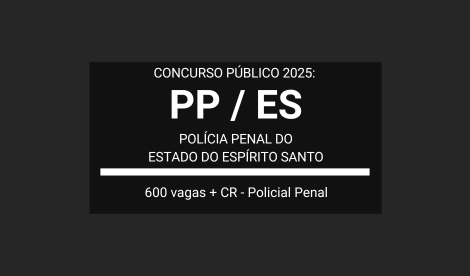 O concurso público da PP / ES objetiva prover 600 (seiscentas) vagas + formar cadastro de reserva (CR), no cargo de: Policial Penal.